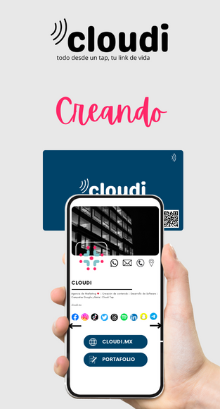 Es momento de innovar tu persona y empresa, con las tarjetas de Cloudi Tap lleva tu información siempre contigo.